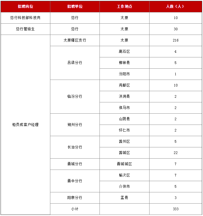 備注:應聘異地分行城區(qū)支行的人員,原則上要求戶籍或生源地為本地市;應聘縣域支行的人員,原則上要求戶籍或生源地為本縣或周邊縣域。