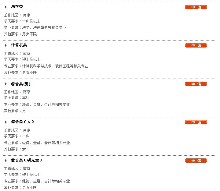 2、全日制普通高校國民教育系列大學(xué)本科及以上學(xué)歷(不包括成人教育、遠(yuǎn)程教育等形式),綜合類(金融、經(jīng)濟(jì)、財(cái)會等)、法學(xué)類、計(jì)算機(jī)類(含2014年應(yīng)屆畢業(yè)生);