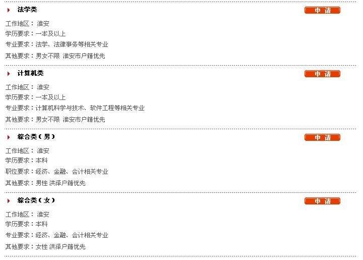2、報考計算機類、法學(xué)類,學(xué)歷要求一本(含)以上、淮安市(縣、區(qū))戶籍優(yōu)先。