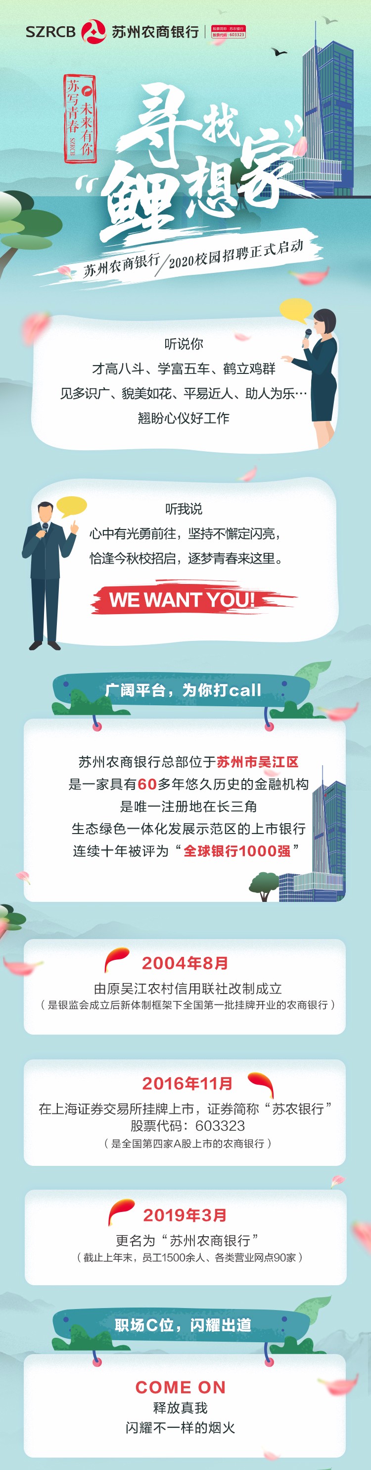 2020年蘇州農(nóng)商銀行校園招聘公告