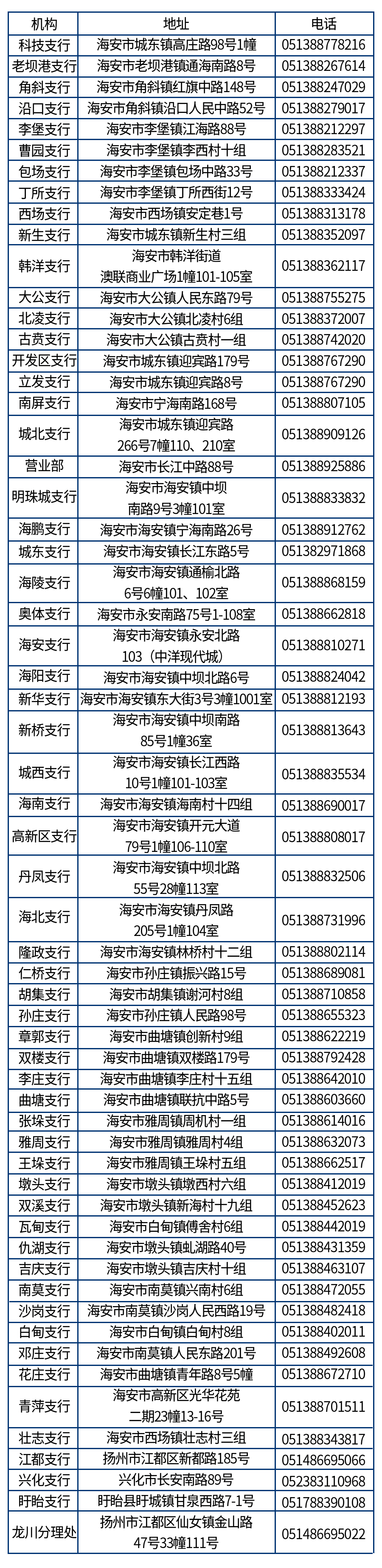 江蘇海安農(nóng)村商業(yè)銀行股份有限公司(簡稱:海安農(nóng)商銀行),成立于2011年2月28日,截至目前,注冊(cè)資本金10億元,下設(shè)1個(gè)營業(yè)部和63家支行(含盱眙支行、江都支行、江都龍川分理處、興化支行、興化昭陽分理處五個(gè)異地機(jī)構(gòu)),是海安市營業(yè)網(wǎng)點(diǎn)最多、服務(wù)觸角最長、資產(chǎn)規(guī)模最大、經(jīng)營實(shí)力最雄厚的本土銀行。作為農(nóng)村金融機(jī)制改革的先行者與探索者,海安農(nóng)商銀行一直走在全省農(nóng)信改革發(fā)展前列。