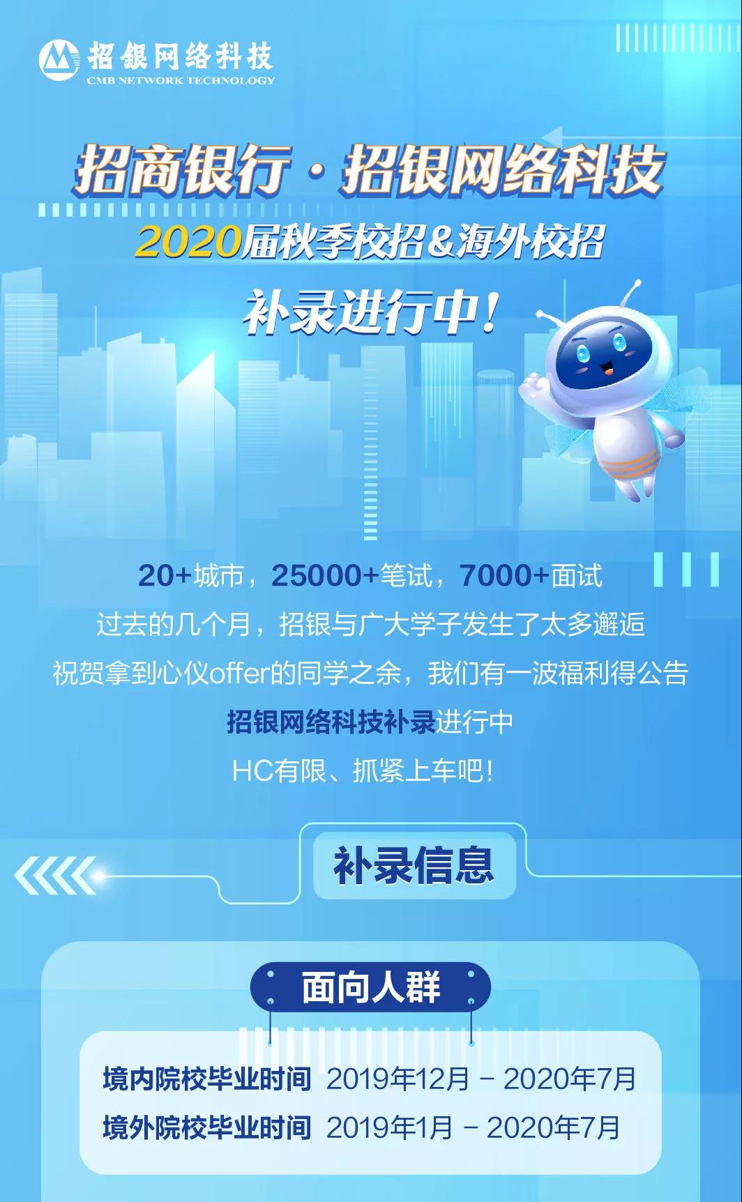 2020招商銀行招銀網(wǎng)絡(luò)科技秋季校招和海外校招補(bǔ)錄公告