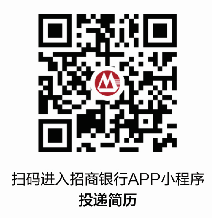 下載“招商銀行APP”,打開左上角“掃一掃”功能,掃描下方二維碼,即可查看最新招聘崗位,點擊“我的簡歷”可創(chuàng)建簡歷并投遞相應(yīng)招聘崗位。