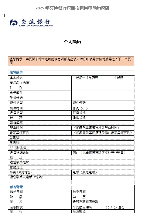 所以報考交行的同學,你現(xiàn)在最重要地就是提前準備好你的網(wǎng)申簡歷。