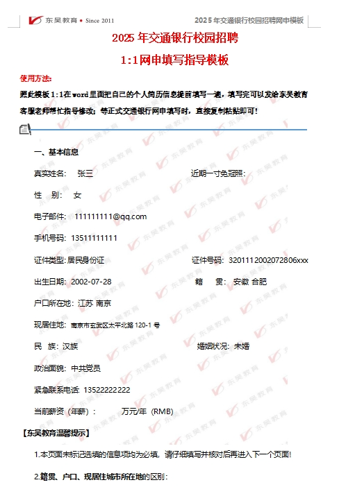 以下是交行的網(wǎng)申模板和網(wǎng)申逐項指導,需要可咨詢在線老師獲取奧!