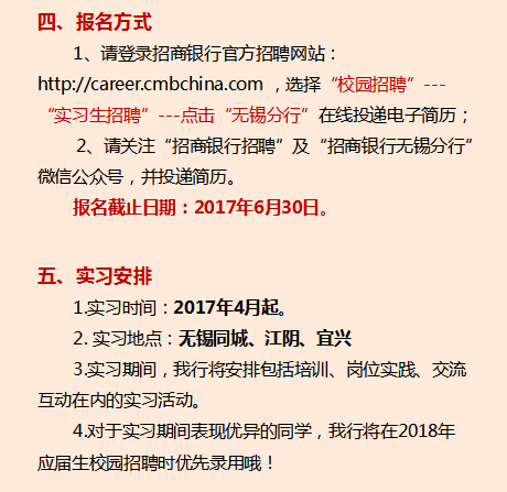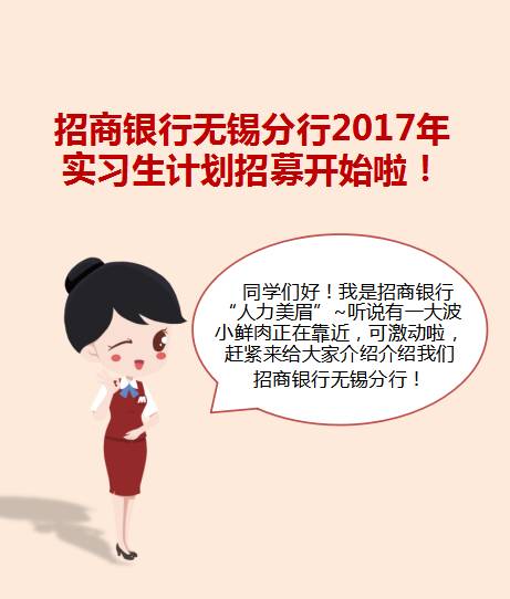 招商銀行無錫分行2017實(shí)習(xí)生計劃招聘