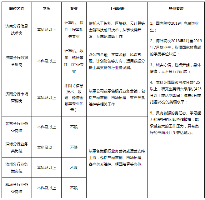 2019年招商銀行濟(jì)南分行春季校園招聘公告