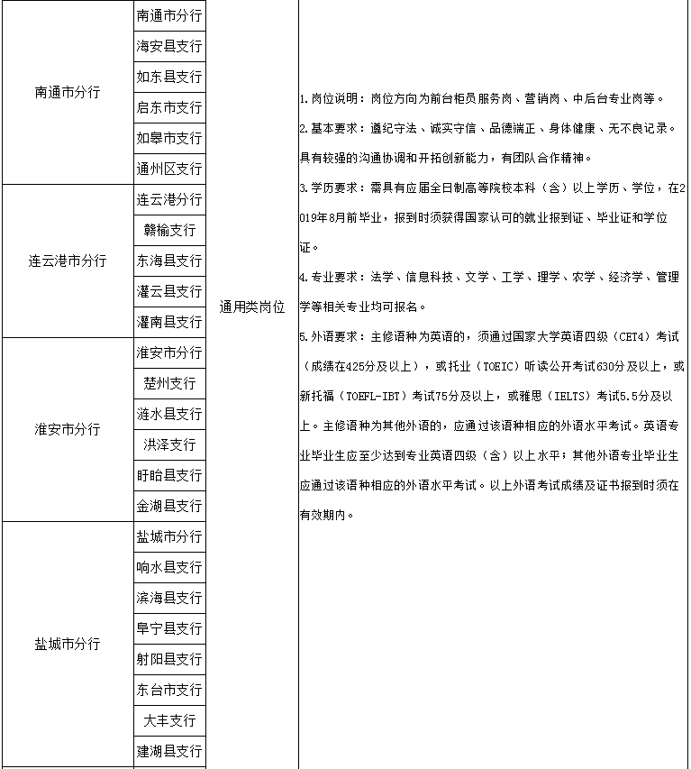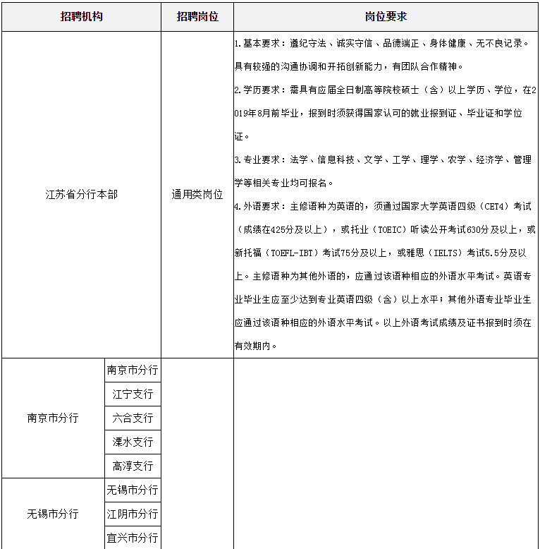 3. 中國郵政儲蓄銀行江蘇省分行對本次招聘享有最終解釋權。