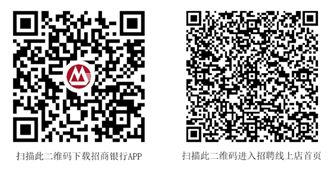 方式二:點擊鏈接 https://dwz.cn/iAfvhZf2 或掃描下方二維碼,下載招商銀行APP,點擊首頁【城市服務】—定位到【深圳】—【更多精彩】—【深圳分行招聘】投遞簡歷。持續(xù)關注線上店,了解更多招聘資訊!