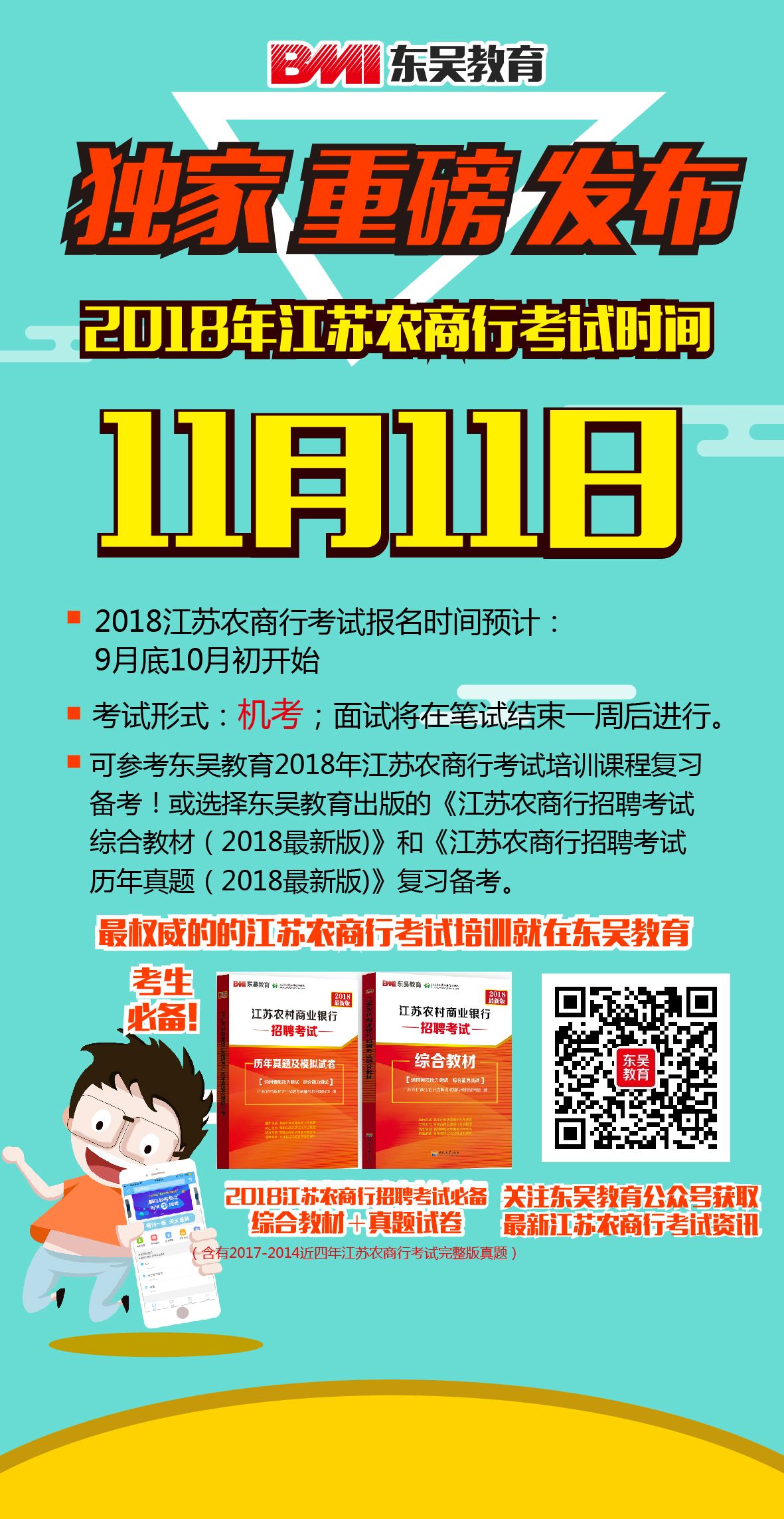 2018江蘇農(nóng)村商業(yè)銀行招聘考試時(shí)間定為11月11日