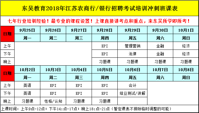 2018年江蘇農(nóng)商行/銀行招聘考試培訓(xùn)沖刺班9月28日開課!真題刷題班10月9日開課!