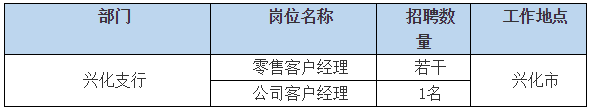 2019年蘇州農(nóng)商銀行興化支行社會招聘公告